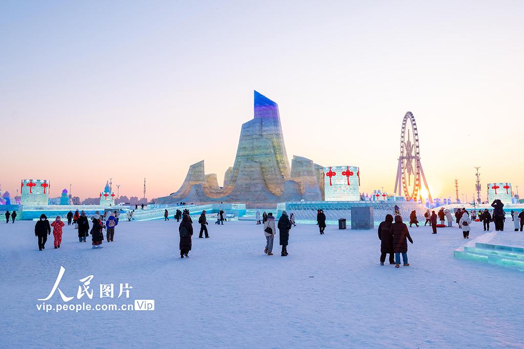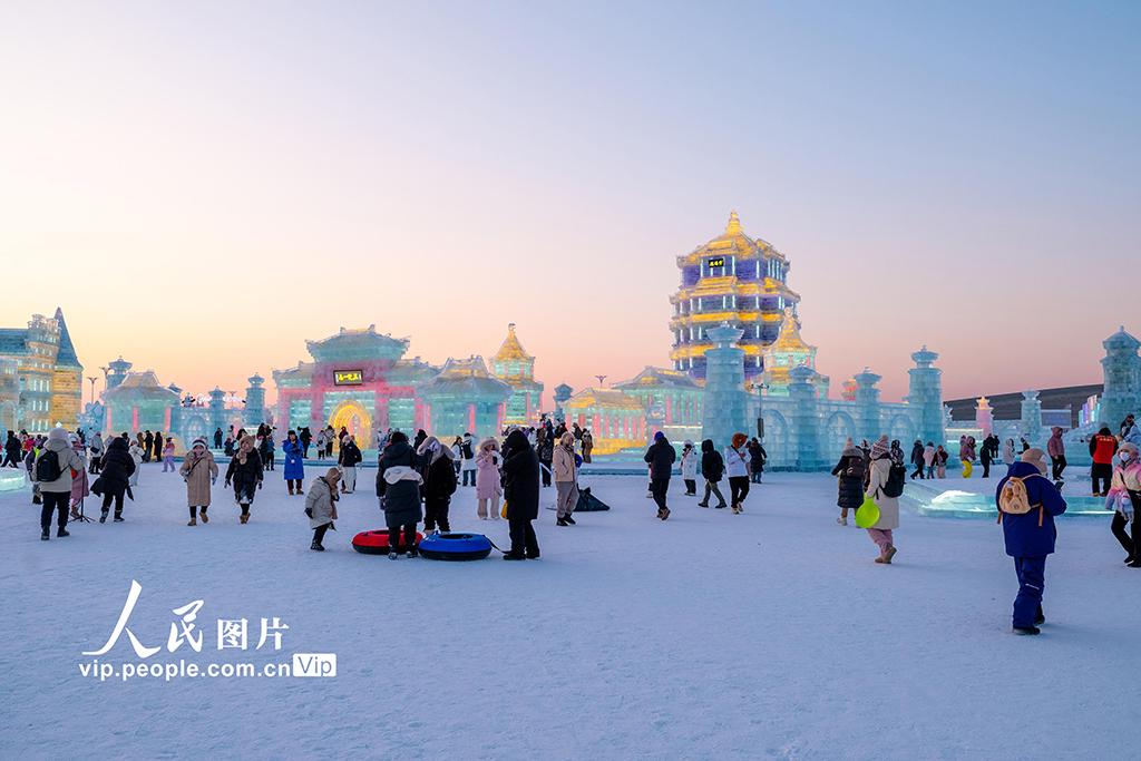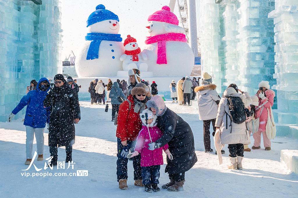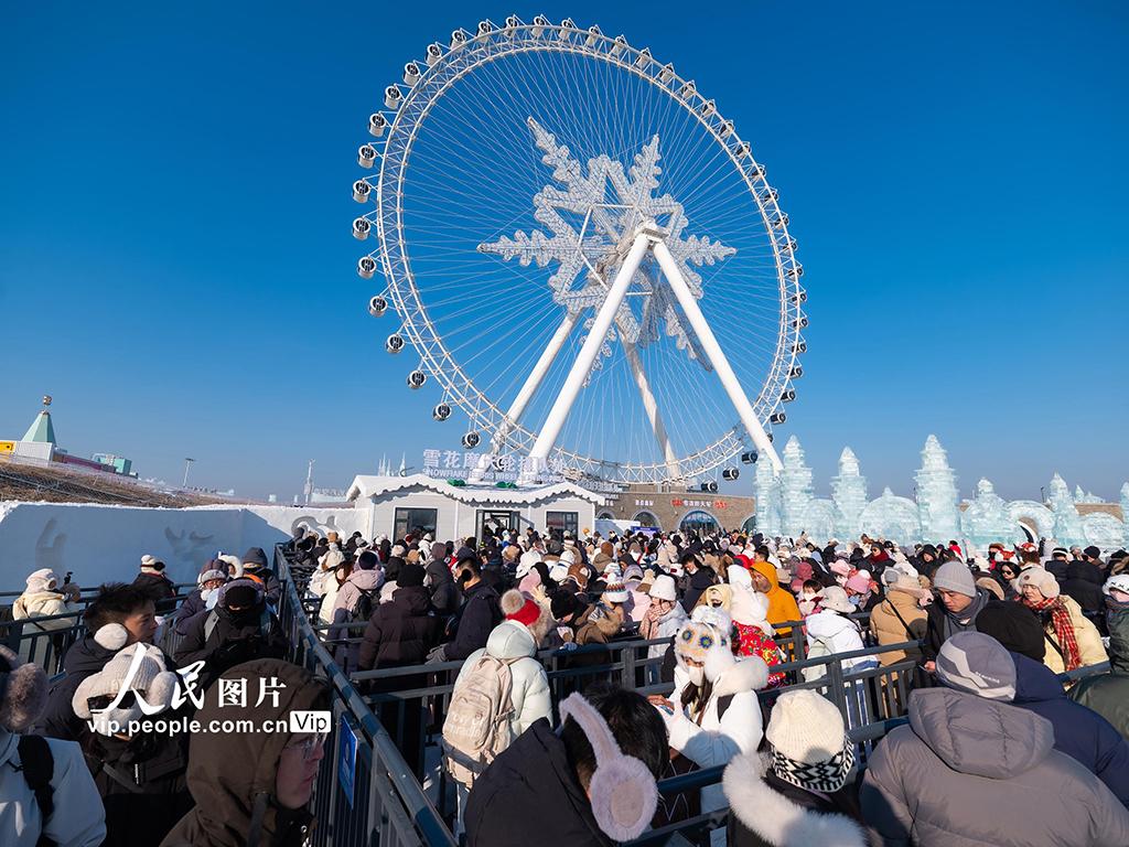 2025年12月17日,第二十七届哈尔滨冰雪大世界在哈尔滨盛大开幕,来自全国各地的游客纷至沓来,冰雪“冷资源”点燃冬季旅游热经济。耿洪杰摄(人民图片网)