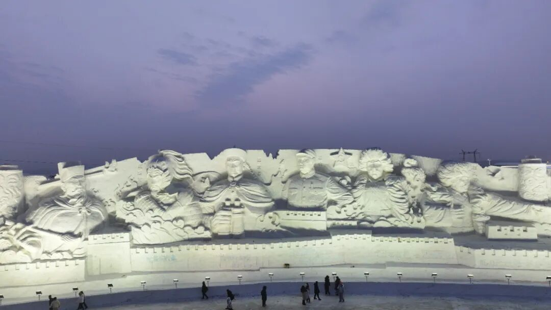 本届长春冰雪新天地紧扣“冰雪福耀中华·民族大团结”主题,倾力打造气势恢宏的雪雕塑群。长达千米、高数十米的雪雕塑群气势恢宏,令人震撼。一座座栩栩如生的巨型冰雪雕塑将各民族的特色文化与地域风情浓缩于冰雪之上。