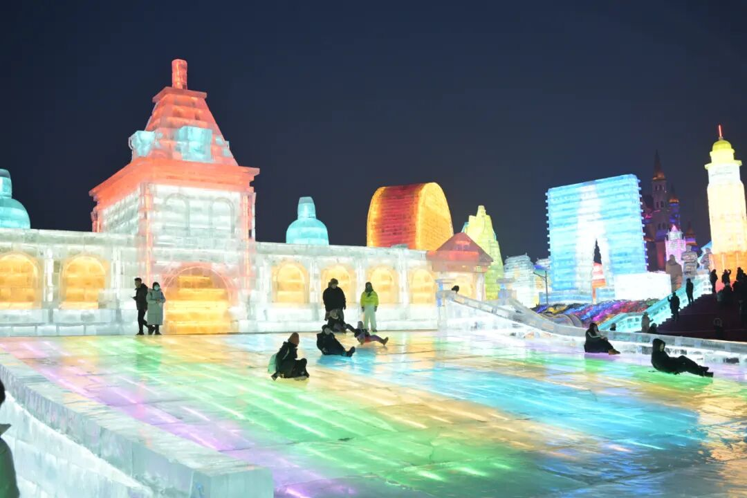 同样人气爆棚的还有520米长激情冰滑梯。一条条滑道闪着七彩灯光,游客们坐上滑板瞬间俯冲而下,尖叫声、欢呼声此起彼伏,响彻园区上空。“特意带着孩子来体验520冰滑梯,孩子玩得特别开心,这就是冬天该有的样子!”来自吉林市的游客李女士牵着刚玩完滑梯的儿子,笑着说道。