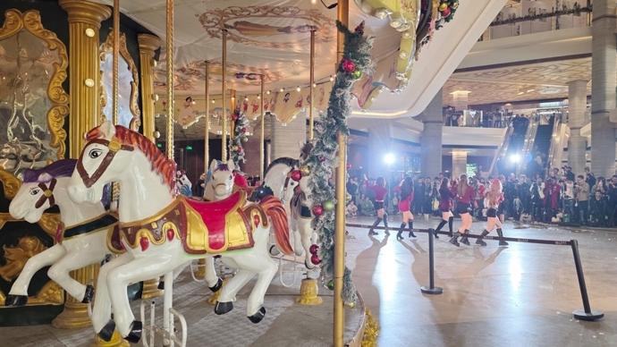 此次活动包括商场中庭的梦幻“旋转木马”、标志性的“悬浮星光森林”以及结合每日特定时段上演的“人工降雪”及“魔法烟雾泡泡”秀。