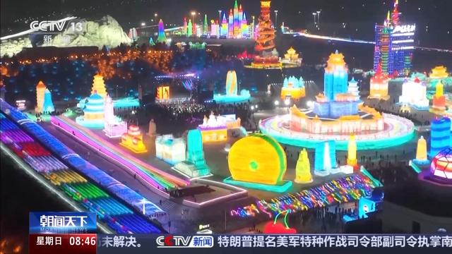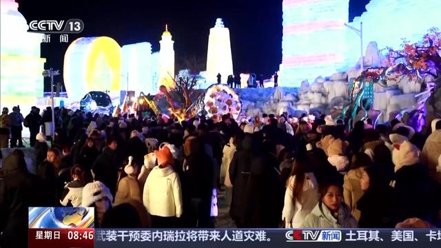 游客 林泽松:我是从广东来的,也是第一次来到这里看冰雕,感觉非常美丽、震撼。