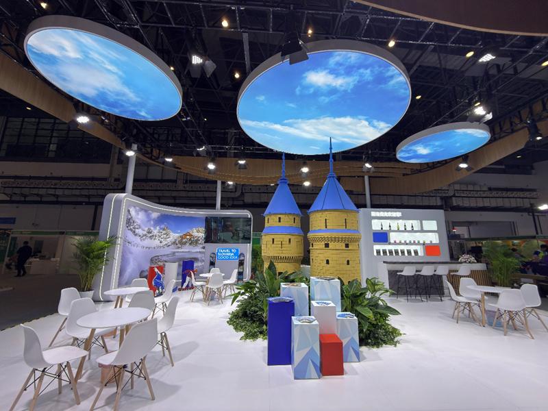 为了吸引游客和产业各方,展商们拿出了各自绝活。斯洛伐克此次以“体育×旅游”的双轮模式亮相推介,成为境外展区的一大亮点。近200平米的沉浸式展台打出了一个言简意赅的口号:“去斯洛伐克旅游是个好主意!”展台设计灵感源自标志性建筑“博伊尼采城堡”,融合中世纪历史元素与现代互动科技,为参观者带来穿越时空的视觉体验。展区内特别设置的滑雪模拟体验区,生动呈现了斯洛伐克四季皆宜的户外运动资源与独特人文风情,吸引众多观众驻足。