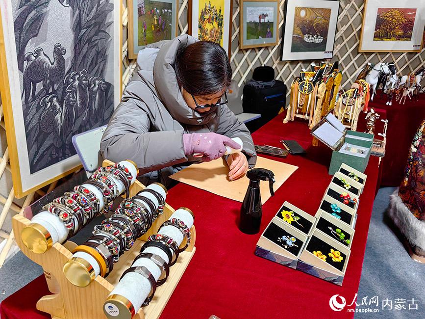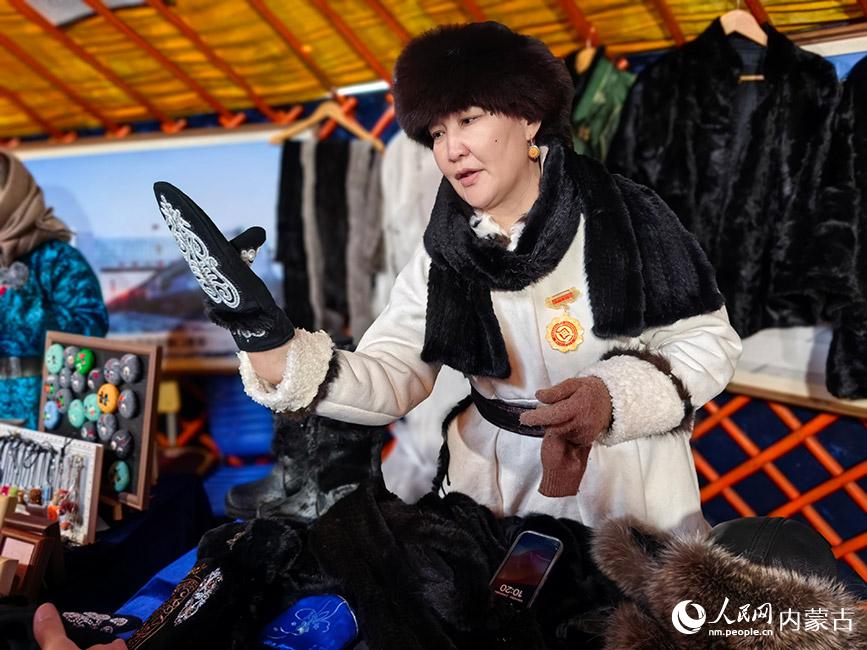 来自各盟市的美食、非遗文创产品,吸引着现场游客的驻足。丰富多彩的“内蒙古礼物”成为冰雪那达慕的“热宠”。