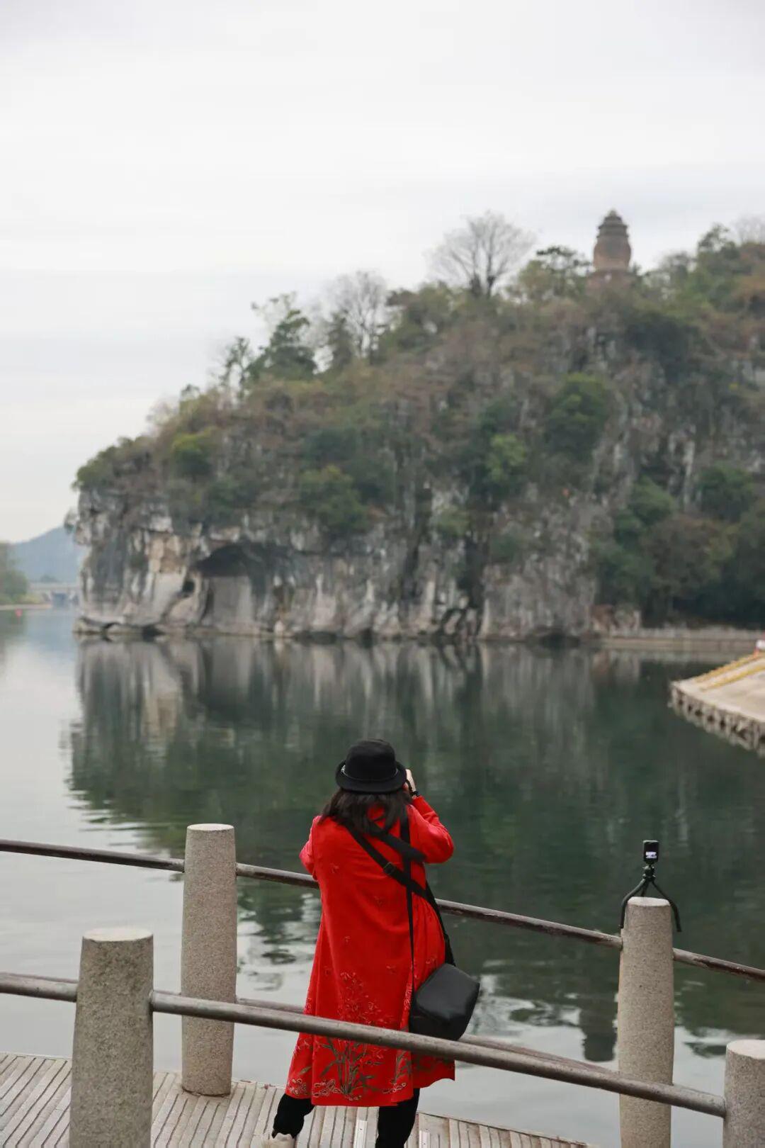 乘坐航班或高铁抵达桂林,建议选择入住两江四湖附近的酒店,步行即可抵达核心景点。放下行李后,直奔象鼻山——这座小学课本里的“桂林城徽”,冬季免费开放(需提前1天预约),3号门进2号门出的路线最省时,上午9点前入园光线最佳,能拍出大象饮水的完整倒影,穿浅色或红色衣物拍照更出片。