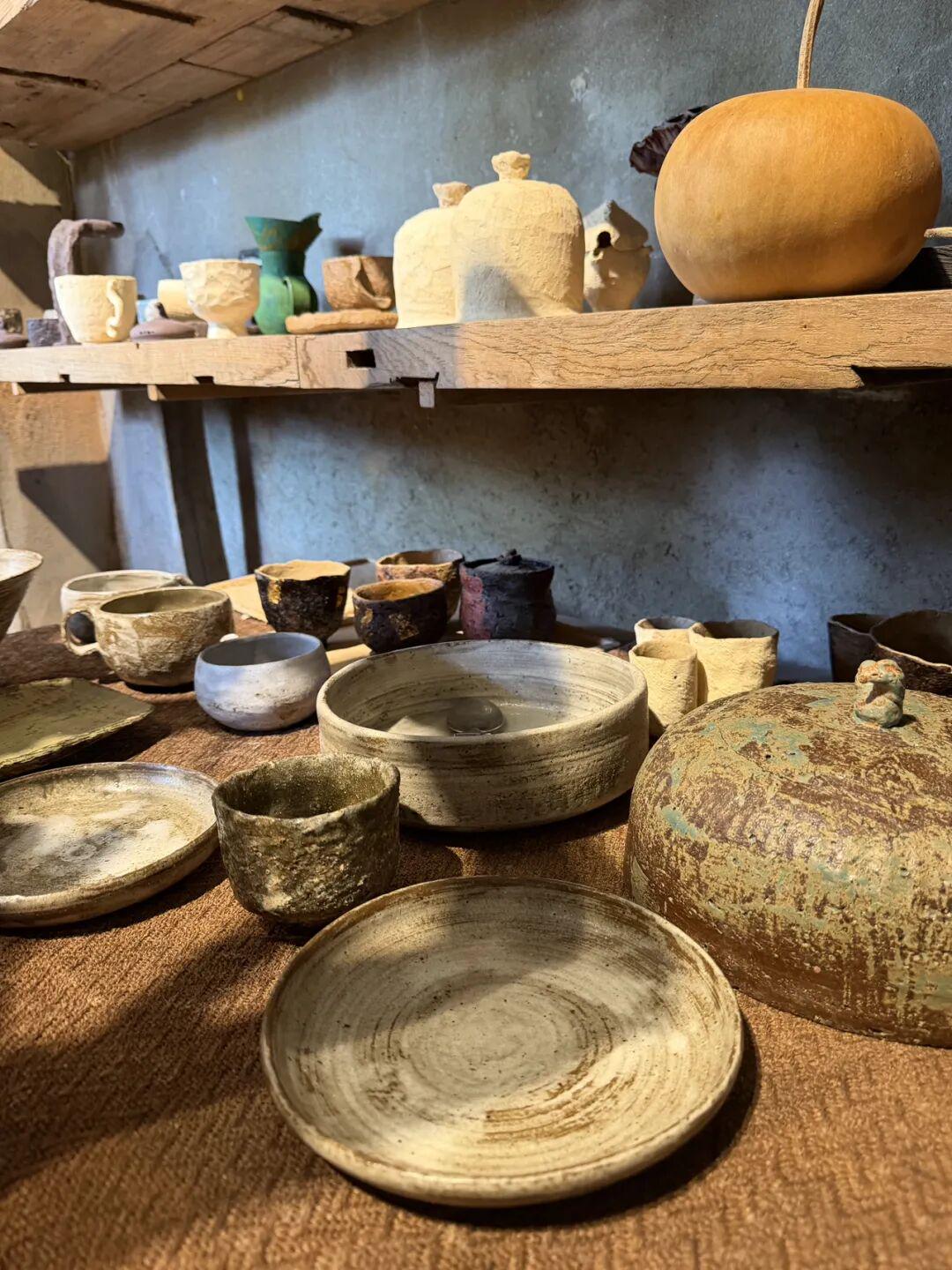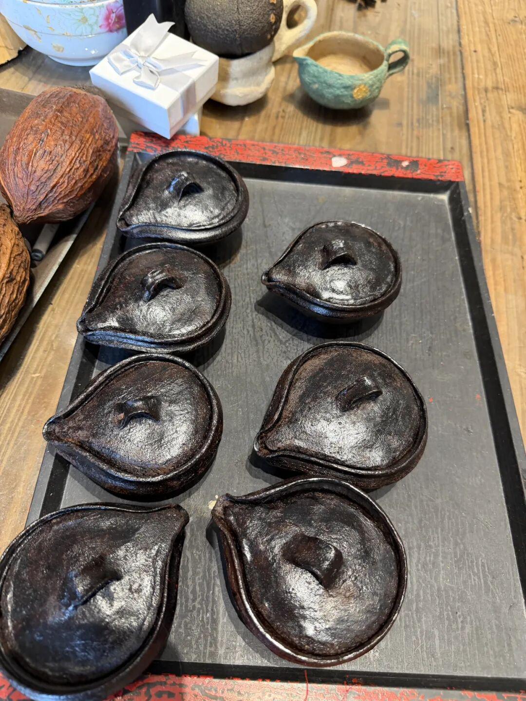 百年乌桕树下,原创陶艺的陶泥还带着高岭土的温润,手绘漆器的漆面晕开细腻的光泽,柚器的纹理藏着柚木的清香,柿子染织物的暖橙底色,是秋日柿果沉淀的天然晕染。每一件器物都取自自然,经匠人之手细细打磨,没有流水线的刻板,只有手作的温度与巧思。