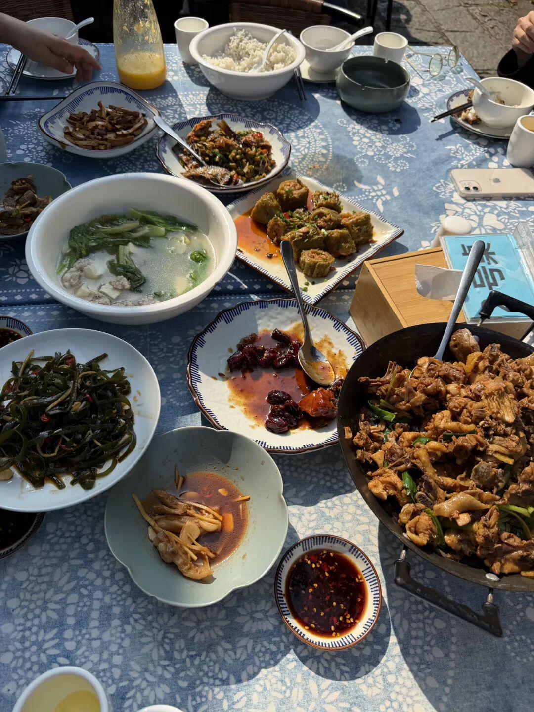 午餐在月亮山脚下的农家菜馆解决,推荐啤酒鱼、田螺酿和荔浦芋扣肉,田螺酿将肉馅塞入田螺壳中蒸熟,鲜香入味;荔浦芋扣肉肥而不腻,芋头吸满肉汁,搭配米饭堪称一绝。