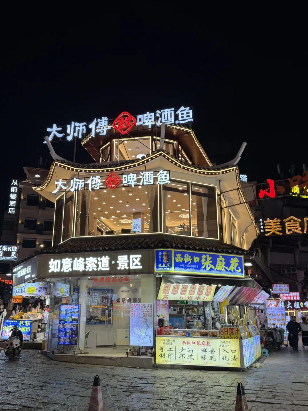 傍晚乘坐游船夜游两江四湖(提前订票比官网便宜30%),沿途欣赏杉湖、榕湖、桂湖、木龙湖的夜景,日月双塔在灯光映照下熠熠生辉,桥梁与古建筑的轮廓倒映在水中,宛如仙境。夜游结束后,可前往正阳步行街觅食,推荐璞食桂北融合菜,人均70+就能吃到黄焖鸡、漓江虾等特色菜,饭后逛逛街头小摊,感受桂林的烟火气息。
