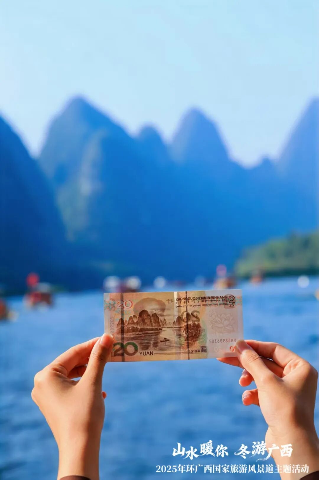 • 上午:漓江竹筏漂流,打卡20元人民币盛景