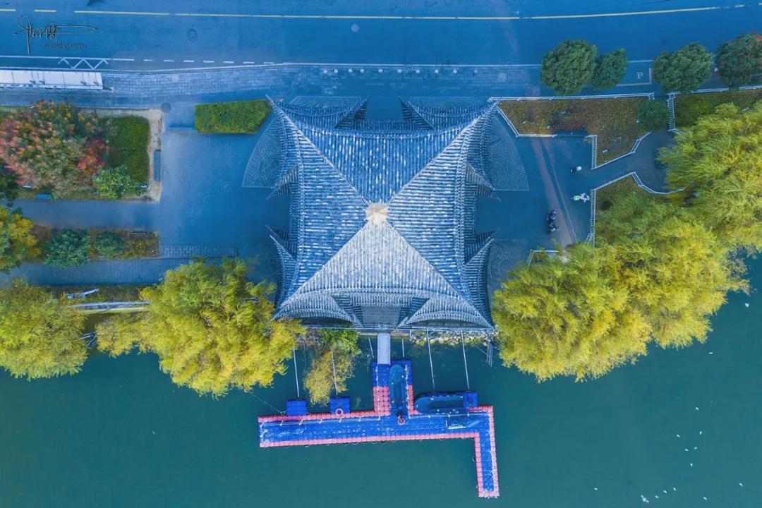 遗憾的是锁水阁一层门窗紧闭,平时应该并不允许市民游客登楼,但我通过航拍,还是左左右右,上上下下“观察”了一番,在这里不得不对其接近完美的建筑和装饰细节表示折服。说实话,我在旅途中探访过国内很多文物古迹,其中并不乏重建或翻新之物,但精致得如此全面的,的确没几个。