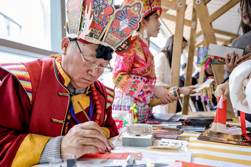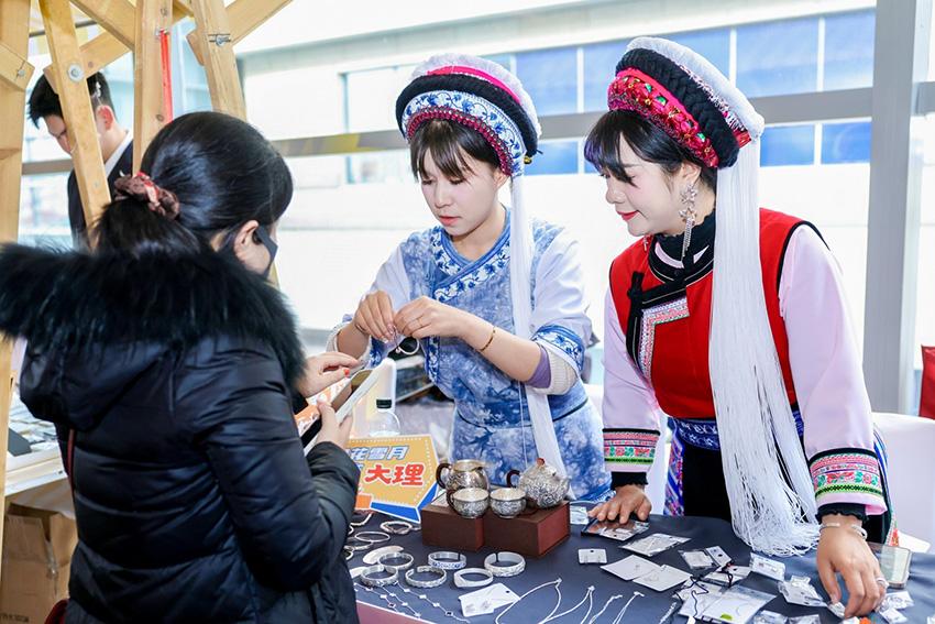 会场外的云南文旅集市上,展示了许多云南特色手工艺品、文创产品。云南省文旅厅供图