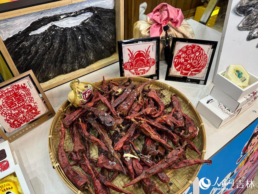 冰雪旅游的活力,不仅体现在游客的笑容中,也实实在在地带动着一方发展。在雪岭景区的“安图好物”展台上,人参灵芝、打糕、辣白菜等延边特产和隋氏铁艺、汤氏剪纸等非遗作品,不仅吸引游客驻足,也默默讲述着土地与人的故事。