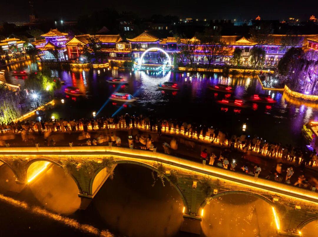 游览这座“江北水乡”,最佳视角在水上。我们推荐您乘坐一次摇橹船。随着船妹子悠扬的小调,扁舟轻摇,穿桥过巷,两岸的粉墙黛瓦如画卷般徐徐展开。尤其是华灯初上时,千盏灯火倒映河中,舟行如在天上星河,令人真切体会古诗中的意境。