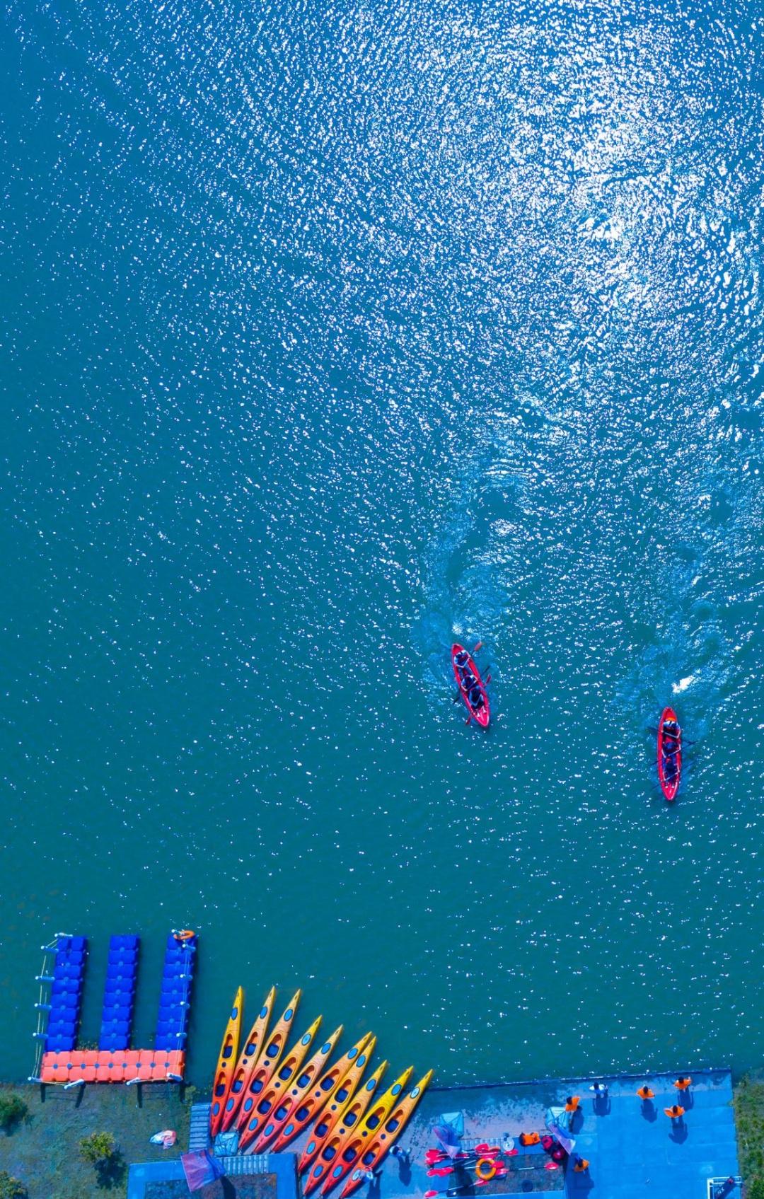 如果是亲子家庭或是年轻人来到水窠景区,亲子皮划艇、花式桨板,还有新增设的水上碰碰船等趣味游乐体验项目,你一定不容错过。亲子家庭携手划动彩虹皮划艇,在碧波荡漾中协作前行,或让孩子跃上水上碰碰船,在浪花里收获勇气与默契;年轻游客则能挑战花式桨板,来一场水花四溅的欢乐对决。