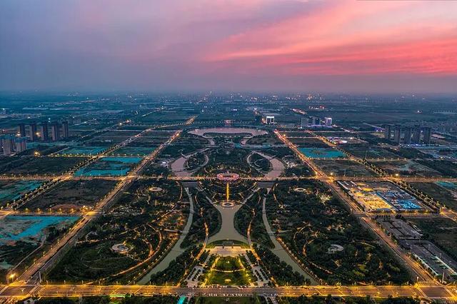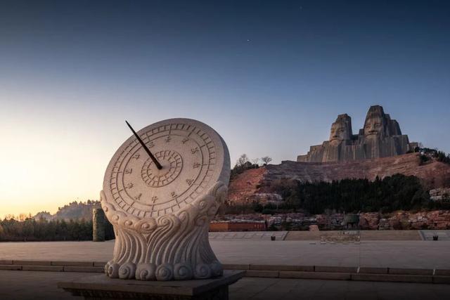 河南郑州黄河文化公园炎黄二帝塑像和日晷。
