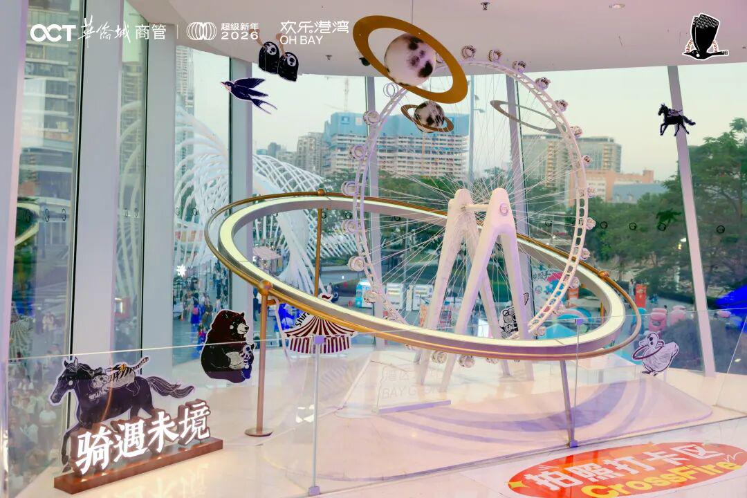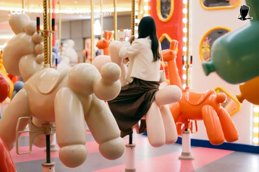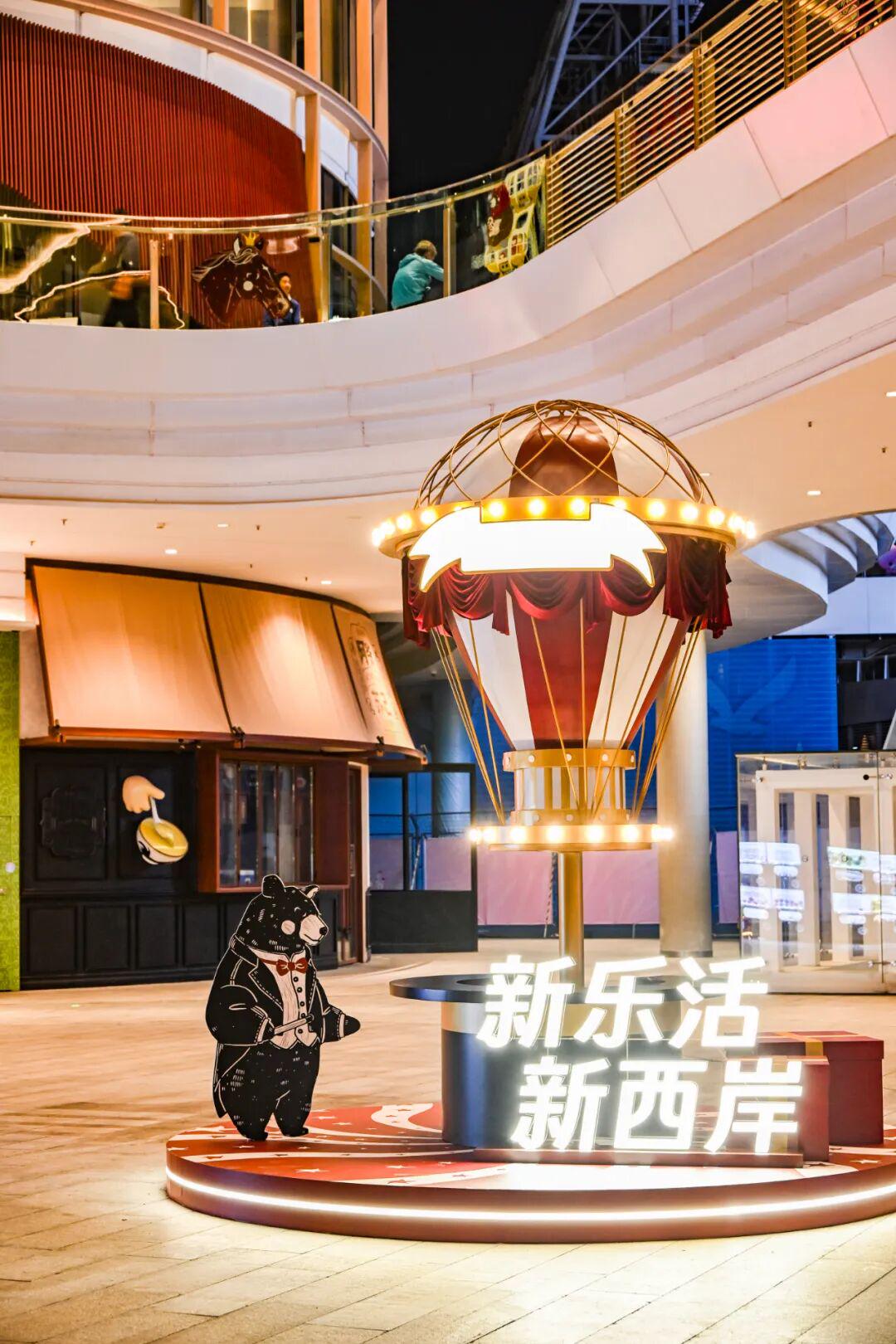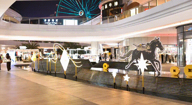 在商业东岸的「骐骥花生」,向许愿池投出心愿币,让涟漪带走马年心愿;商业西岸的「魔术热气球」,则是逛吃路上的元气补给站。