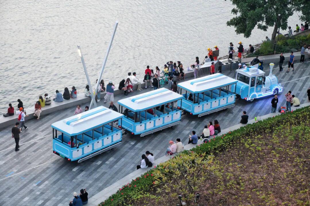 顺着「骑遇小径」走,一路满是“小心机”。发光的小鸟立在枝头数星星,熊猫“叠叠乐”在草地滚不停,萌趣动物随处可见。