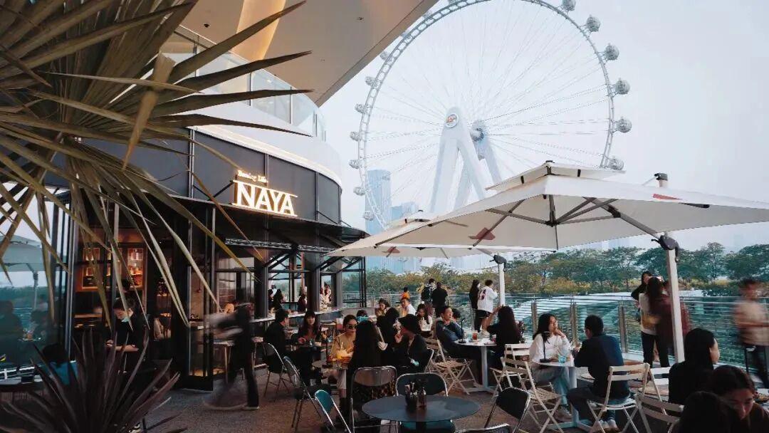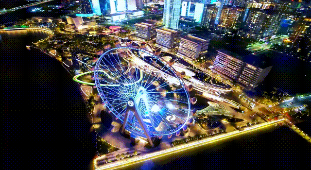 在摩天轮下、海景公园中、商业中心里