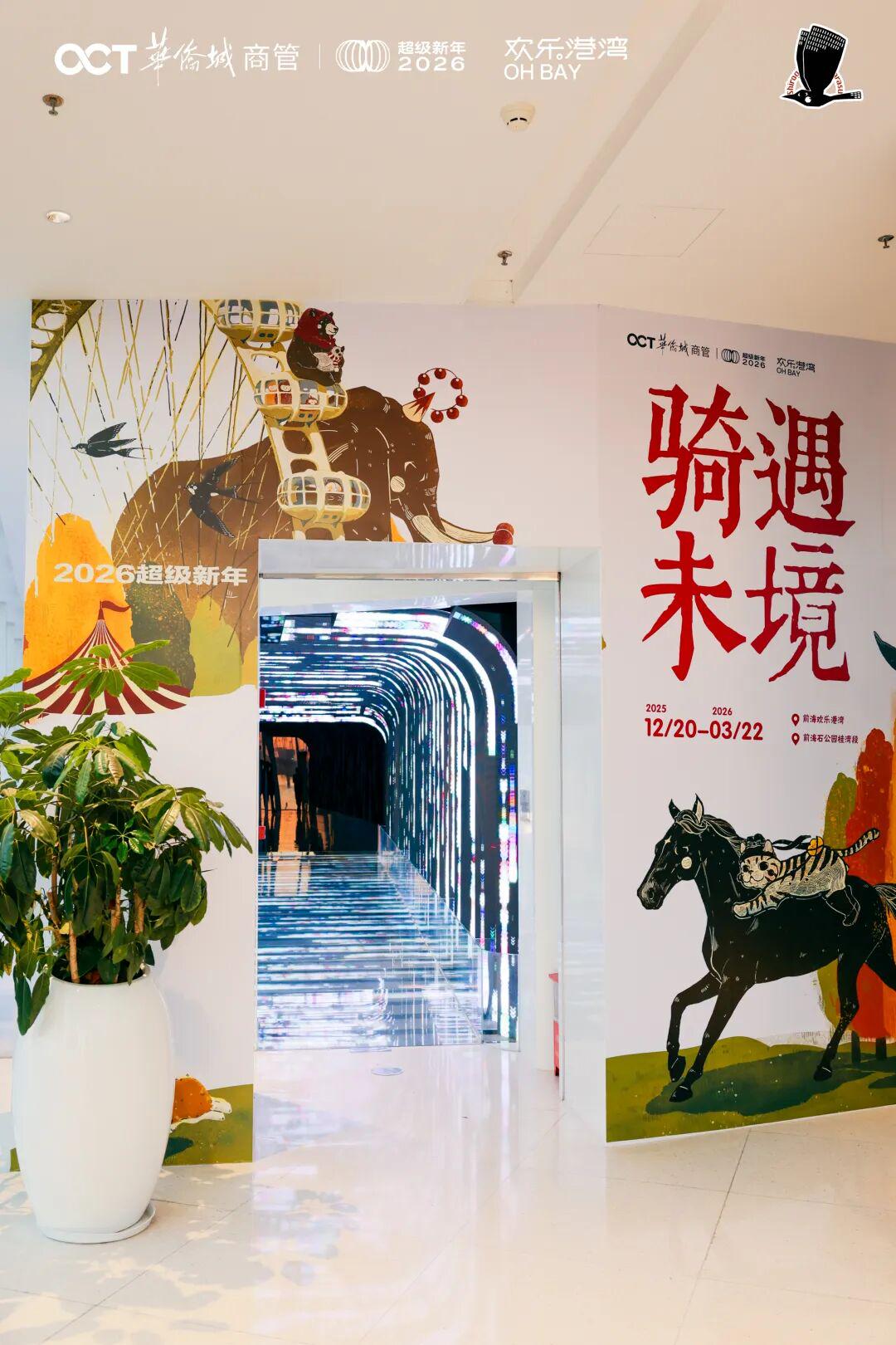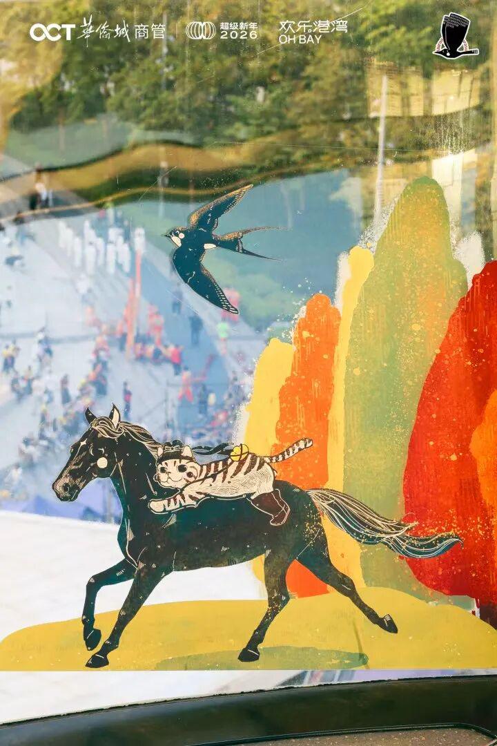 超级新年剧场里,独家彩蛋挖不停!欢乐港湾携手新锐艺术家、白鸦工房主理人坚果,用传统元素作底、当代艺术为笔,打造出“以梦为马”的奇幻场景。