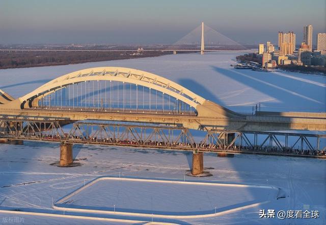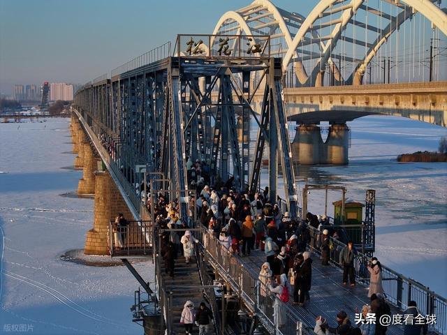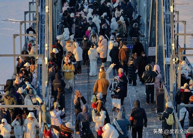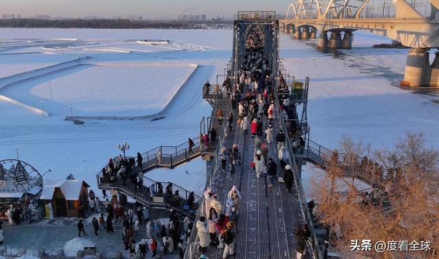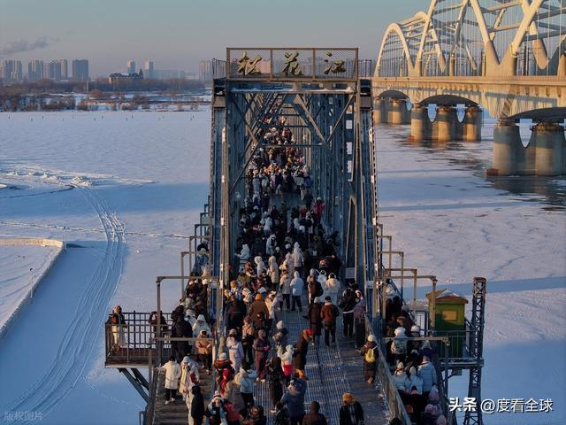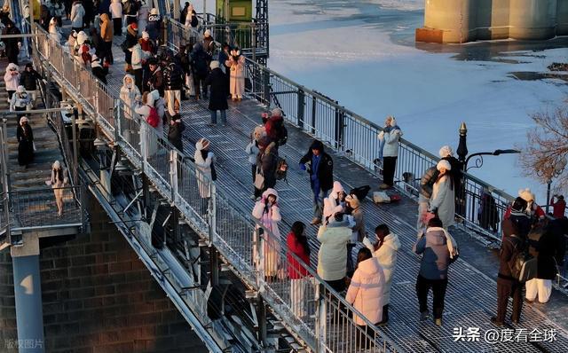 百年滨洲桥则为这份冰雪浪漫增添了历史厚重感。这座松花江上的首座跨江铁路桥,见证了哈尔滨的百年变迁,如今成了游客必打卡的景点。暴雪过后,覆雪的铁轨在阳光下泛着银光,桥身的钢铁结构被白雪勾勒出清晰轮廓,与江面的冰雪景观构成一幅层次丰富的冬日画卷。站在桥上远眺,既能看见江面上来来往往的冰上娱乐项目,又能望见对岸的城市风光,寒风中夹杂着游客的笑声与冰面摩擦的声响,古老铁桥与鲜活人气在此交融,成了哈尔滨“冰与火”气质的生动写照。