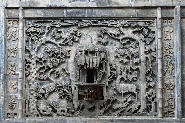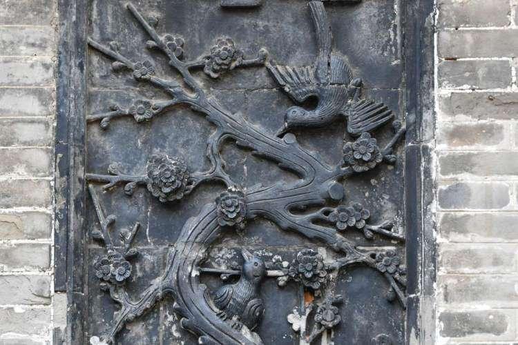 这是12月11日在山西省祁县乔家大院拍摄的蝙蝠砖雕。