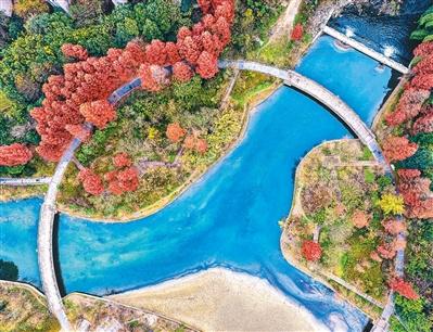 初冬时节,贵州省黔西市水西湿地河水清澈,岸边树木色彩斑斓,景色如画。 周训超摄(人民视觉)