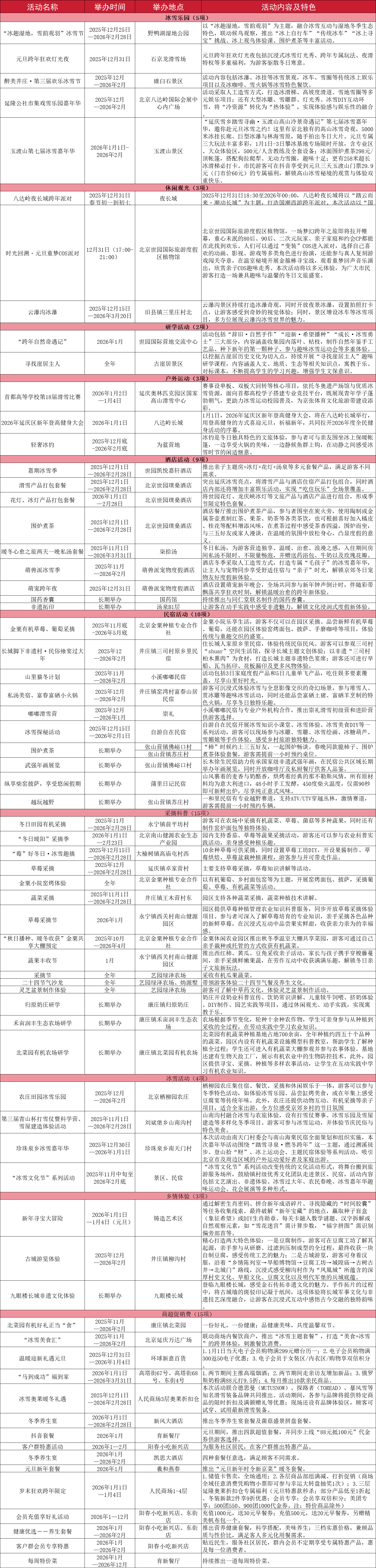2026年延庆区元旦假日期间文旅活动
