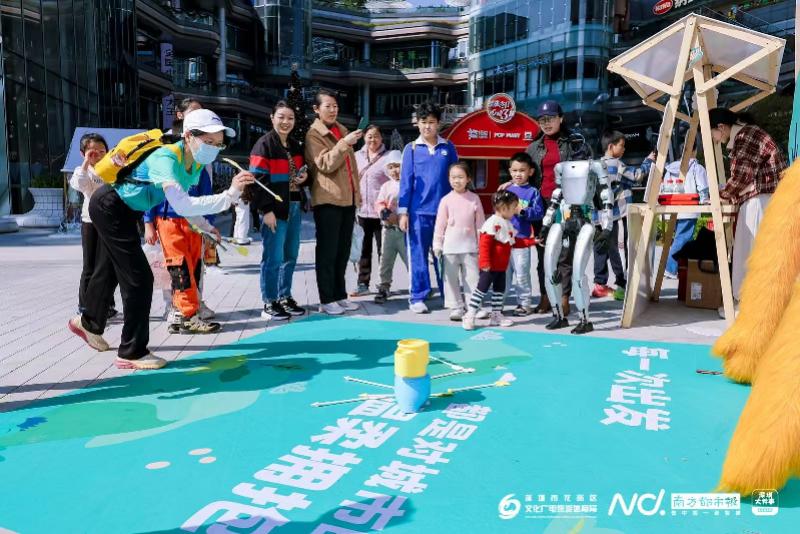 参与活动的市民和游客凭现场领取的“趣游龙岗·潮玩地图”开启集章之旅:在大运天地挑战旱地冰壶的精准投掷,在大运中心玩“耍大牌”卡牌游戏的默契对决,在龙城小院试试幸运骰的意外惊喜……50组“城市漫游家”沉浸式参与,全程欢声笑语不断。