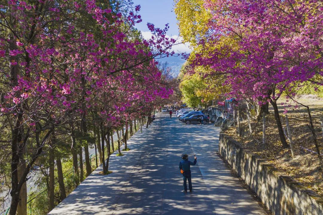 关于这些樱花的品种,起先我只是随缘问了下路过的当地人或者游客,答案大多是“冬樱”,且再无其它。因为江南一带种植的樱花有很多说法,除了“染井吉野樱”、“山樱”和“日本晚樱”等具体花名外,还会根据它们的花形,细分出“重瓣”、“单瓣”等名称,所以后续我也上网稍作查询,原来在大理的樱花基本上只有“冬樱花”和“春樱花”之说。