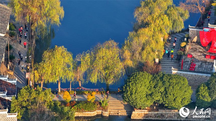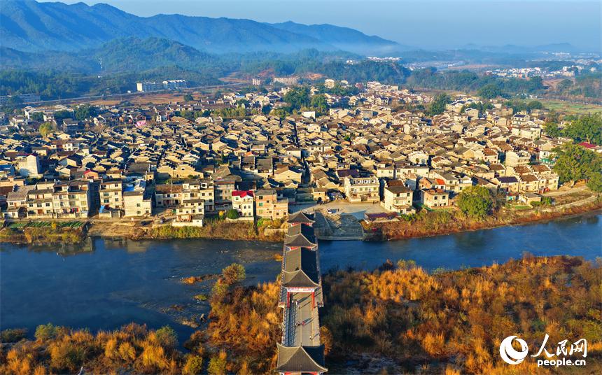 人民网乐安12月29日电 (记者朱海鹏)12月28日,江西省抚州市乐安县流坑古村,远山和村中高低错落的赣派建筑相得益彰、美不胜收,游客漫步其中饱览冬日江南古村的诗情画意。