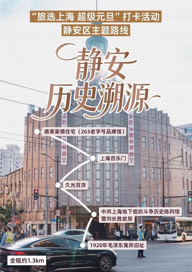 点位串联:德莱蒙德住宅(263老字号品牌馆) → 上海百乐门 → 久光百货 → 中共上海地下组织斗争史陈列馆暨刘长胜故居 → 1920年毛泽东寓所旧址