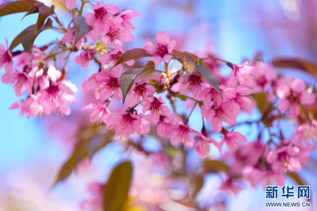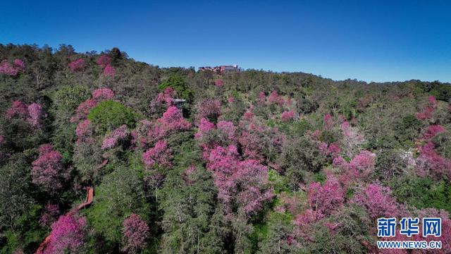 近日,在云南省德宏傣族景颇族自治州陇川县邦瓦山古树樱花谷,一朵朵樱花正迎着暖阳悄然绽放。从远处望去,整座山谷都被粉色的樱花围绕,云雾缭绕时,樱花林若隐若现,宛如仙境。(段宗智王景方雯青孔扎选晶)