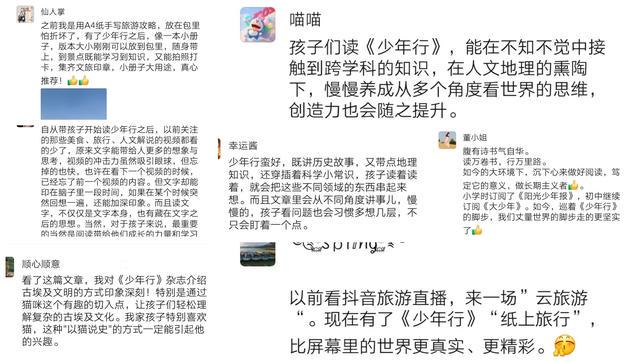 在脚步暂时不能抵达的时候,孩子可以通过《少年行》“纸上旅行”,深度了解和认识世界。陌生的街道、不同的乡音、深厚的文化、新奇的食物、从未见过的动植物……点燃孩子们强烈的好奇心和探索欲。每读一篇文章,就相当于一次深度旅行,比屏幕里的世界更真实、更精彩。