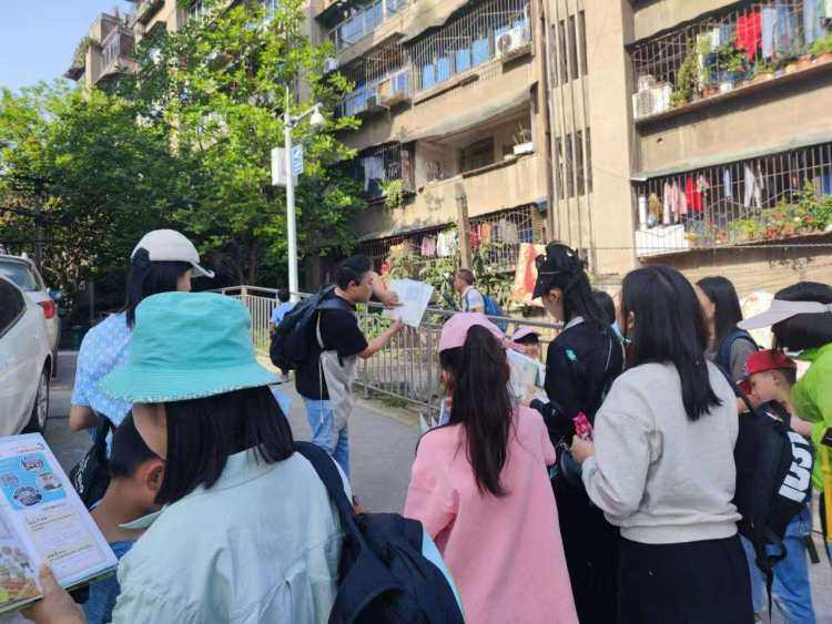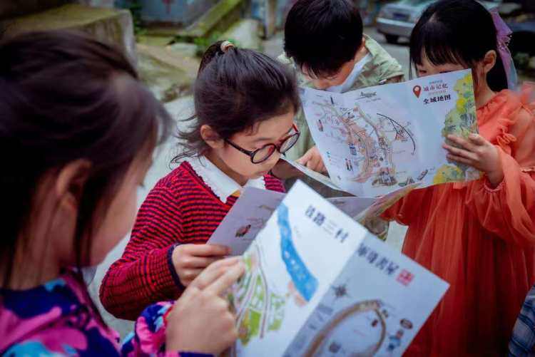 在“爸爸团”设计的“社区共创式体验”项目中,没有导游的存在,孩子们拿着手中的“寻宝图”,通过任务指引,与社区老人对话,参与手工活动,让黄桷坪成为孩子们记忆中的“另一种乡愁”。