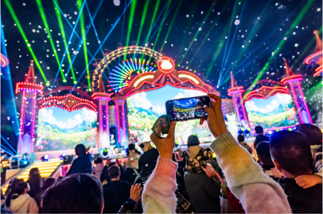 春季的“花火星光夜”,用烟花和电音把乐园变成星空下的露天派对;夏季的“复古风情节”,联手热门综艺,让“上海街”变成可跳舞、可溜冰的怀旧影棚;秋季的“国潮狂欢节”和冬季的“飘雪跨年夜”,则持续制造跨年的仪式感。