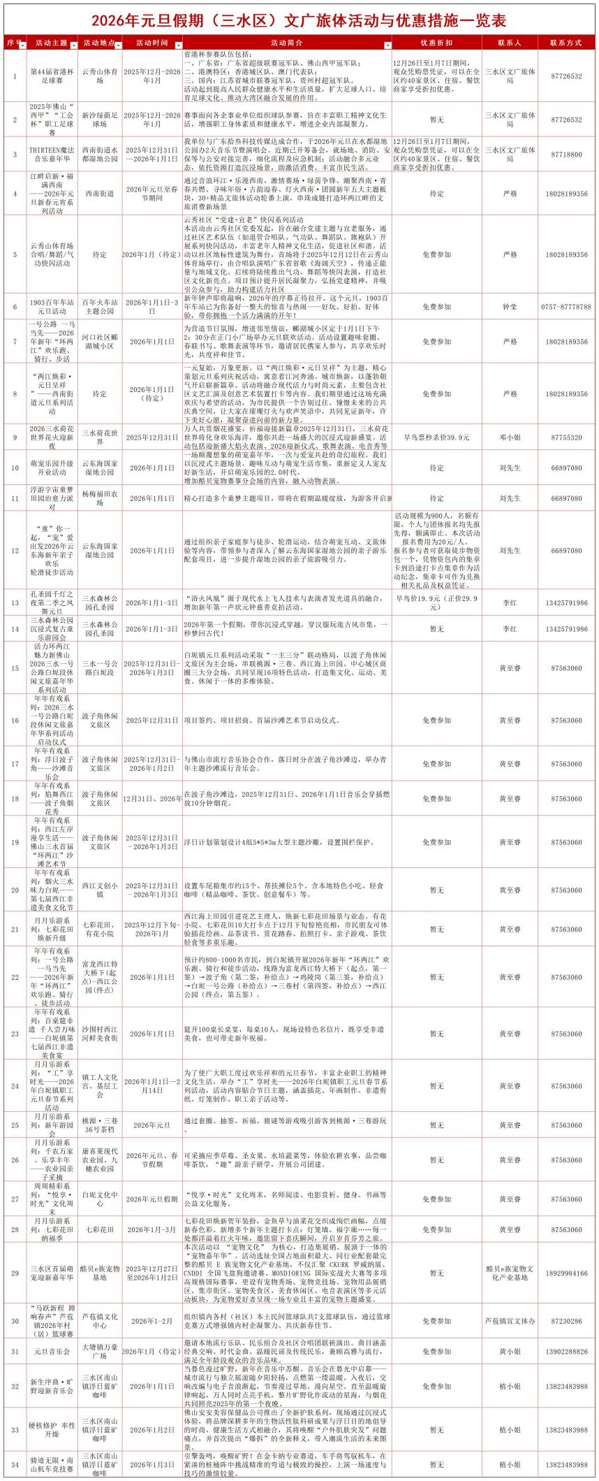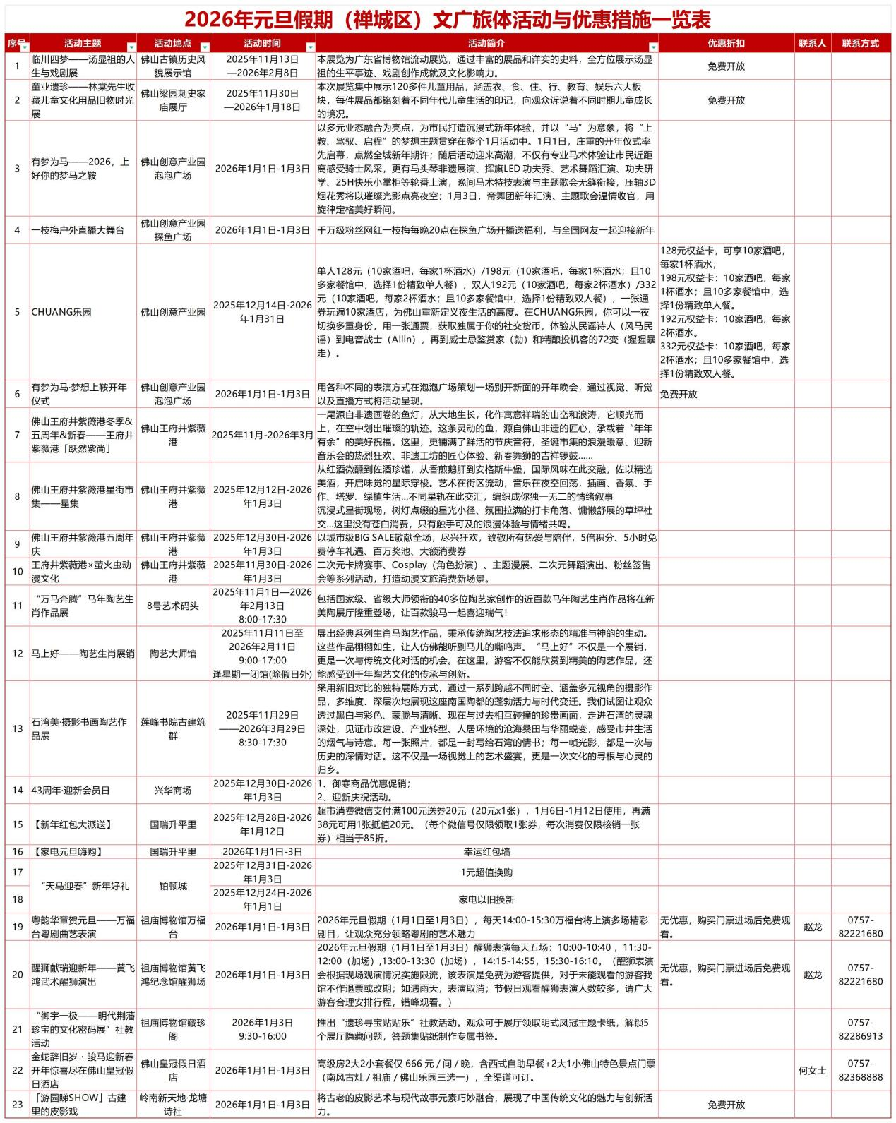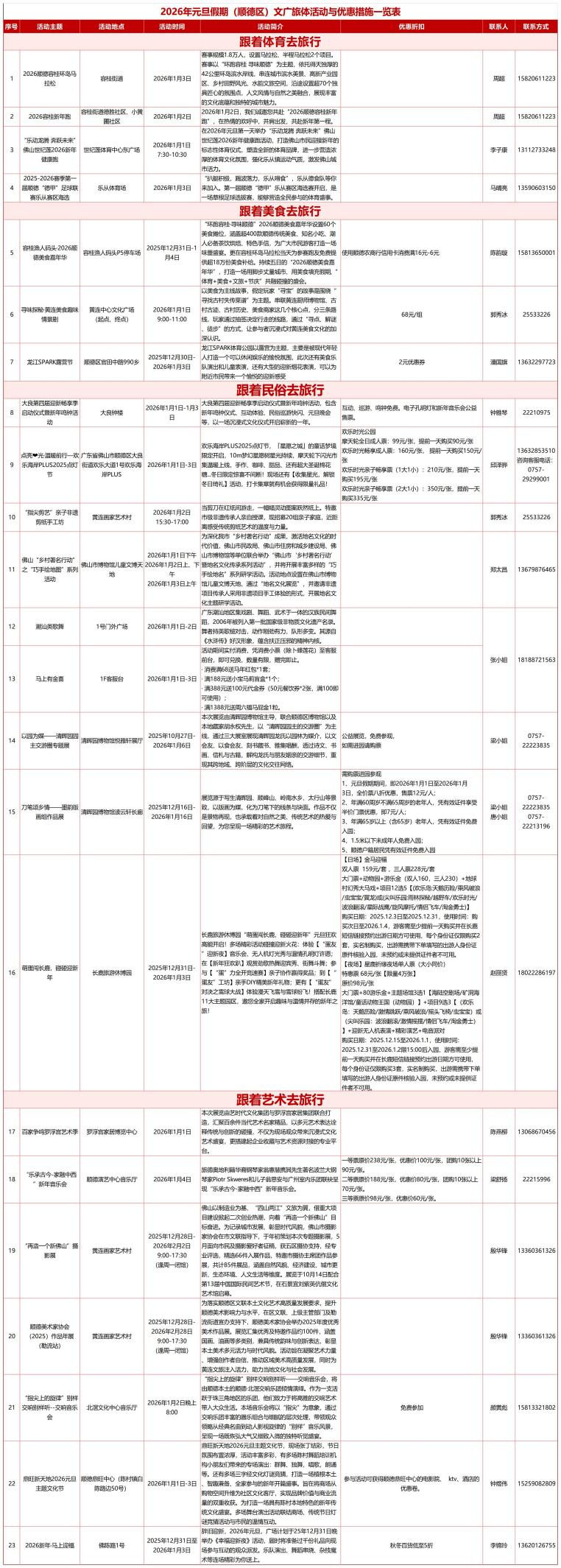 明天就是元旦假期!2026新年,佛山给大家添了满满的“仪式感”,五区不同迎新场景,200多项超好玩的文旅体活动等你来体验。(详细活动列表附在文末)