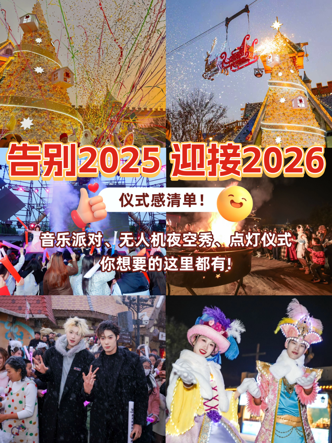 活动详情:12月31日起,景区推出“电音跨年夜”主题系列活动,串联千灯祈福、激光秀等重磅环节。跨年夜当天,园区营业时间将延长至24时,狂欢日夜不停。