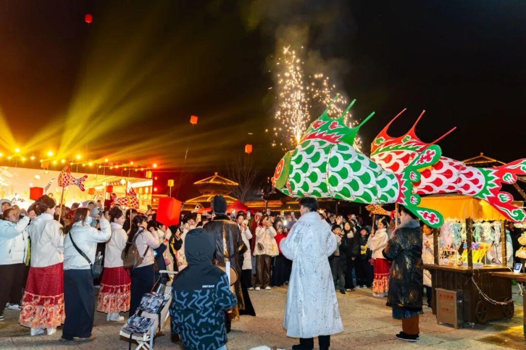 活动详情:炫酷的空中秀新年倒计时陪你一起跨年。NPC沉浸互动、许愿树亮灯、鱼灯巡游、篝火派对精彩不断,暖心羊汤免费喝;还有非遗社火秀震撼上演,舞龙腾跃、火壶飞旋点燃冬日激情。