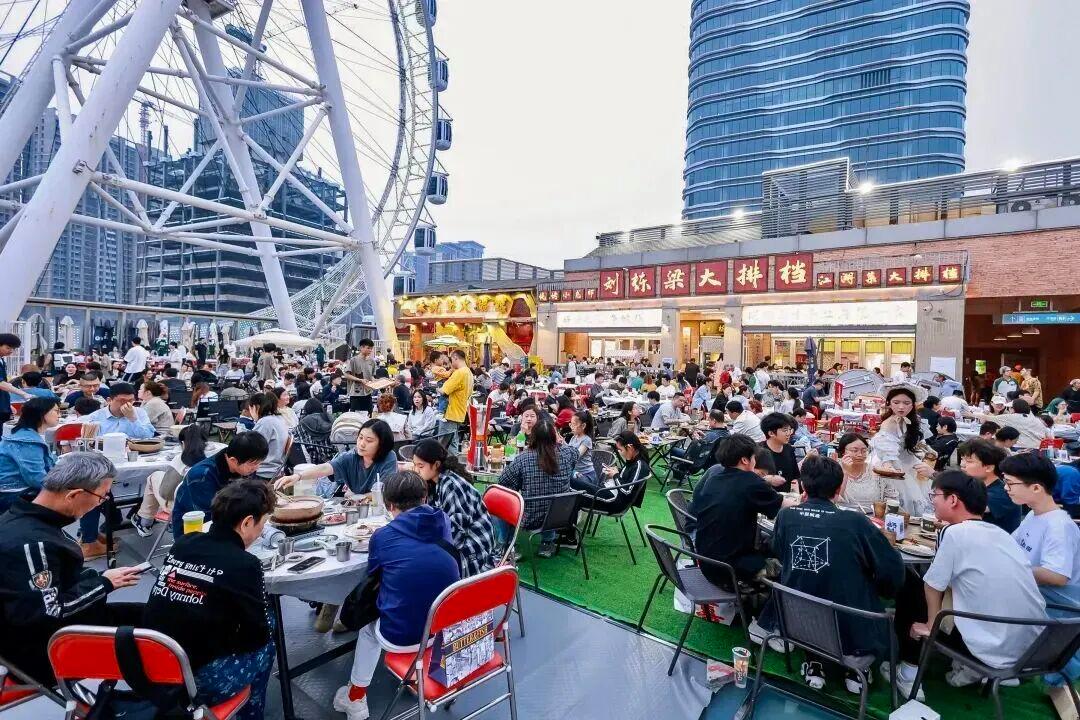 逛完静安大悦城,沿着曲阜路步行约7分钟就能抵达2022年开业的上海苏河湾万象天地,这里有历史建筑群慎余里,也有上海市区唯一的天后宫,开放式的商业空间与公共式的绿地公园交相融合,还有高端宴请餐饮、新锐时尚设计师零售、轻户外生活方式及宠物友好体验业态等。