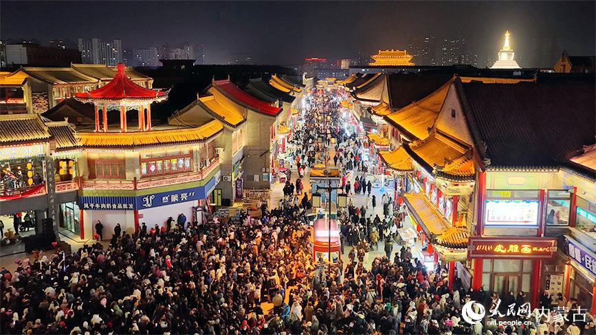 人民网呼和浩特1月1日电 (刘艺琳、实习生德晓航、魏铭骏)2025年12月31日晚,内蒙古呼和浩特市塞上老街旅游休闲街区内灯火璀璨、人潮涌动,一场融合传统韵味与现代创意的跨年盛宴在此上演。