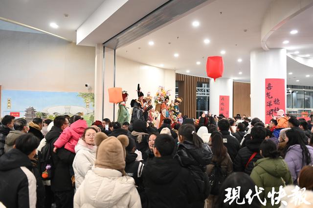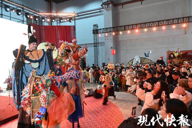 当晚,云栖馆内的烟火市集,30余个摊位集结了非遗手作、地方特色美食、创意文创和茶饮小吃,形成“观赏+游玩+消费”的完整闭环。活动期间,园区贴心设置多项便民服务:亚欧巨舰区域提供免费热水,云栖馆开放空调作为温暖休息区,市政府与工贸学院的免费往返班车解决了出行难题。打卡福利同样吸睛,游客凭门票扫码可领鸡蛋,参与九宫格打卡还能免费兑换文创雪糕,遍布园区的龙纹装置、灯笼串等打卡点让大家快门不停。