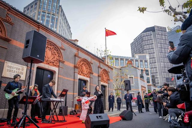 元旦当天,中共一大纪念馆策划了一系列丰富多彩的活动,吸引不少市民游客前来瞻仰参观。早晨升旗仪式后,一场名为“初心‘乐’动 沐光而行”的新年音乐会在一大会址前上演。观众们手持小红旗,在《灯火里的中国》《追寻》《如愿》《不忘初心》等旋律中齐声高唱,在歌声里触摸红色脉搏、汲取奋进力量。在新馆前厅开启的“新年第一讲”,则为新年首日来馆的观众深情解读百年大党的精神密码。