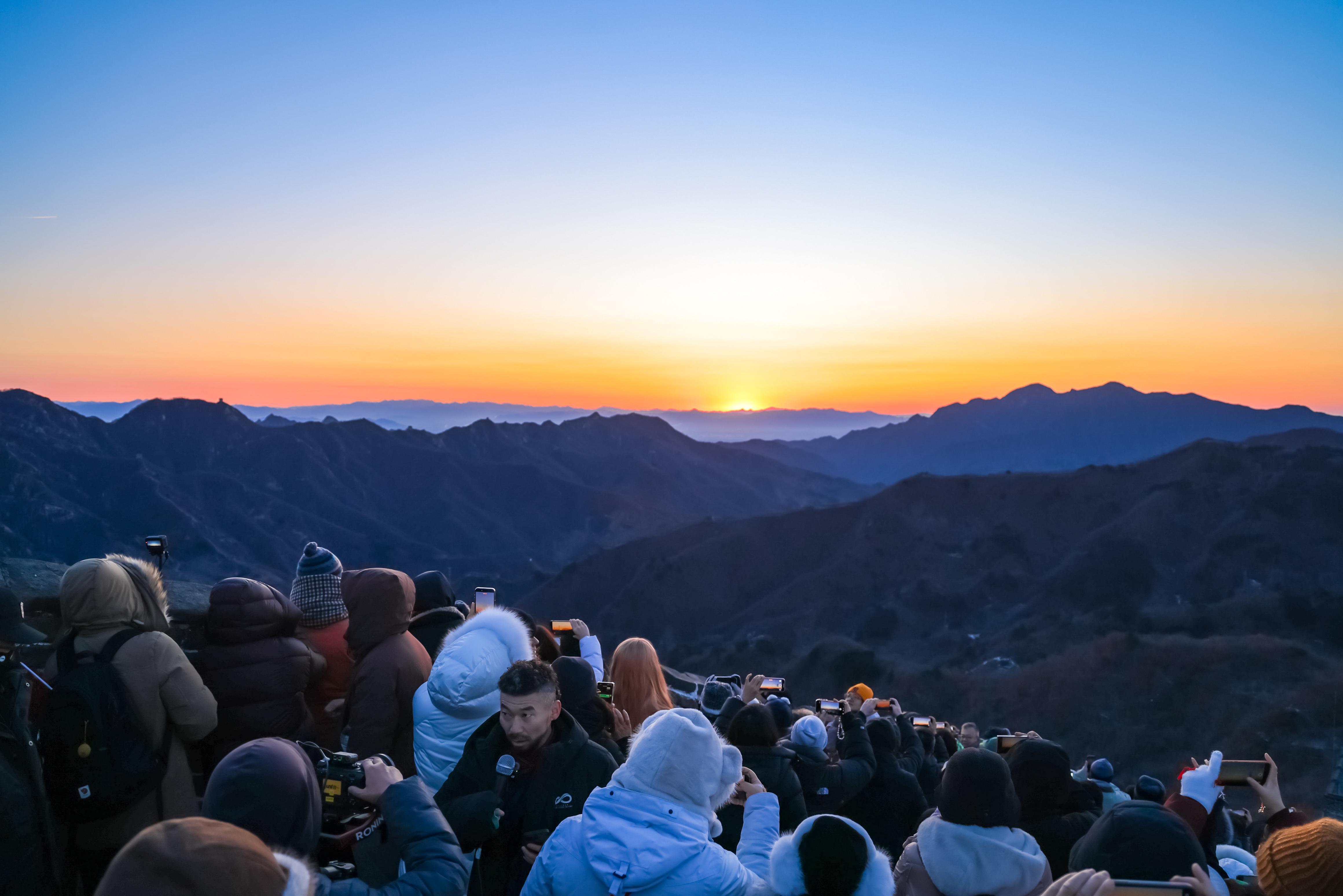据悉,元旦观日出活动是慕田峪长城的品牌活动之一,已经举办三十余年,每年都会吸引众多游客前来参与,共同见证新年的第一缕阳光照耀在古老长城之上的壮丽景色。