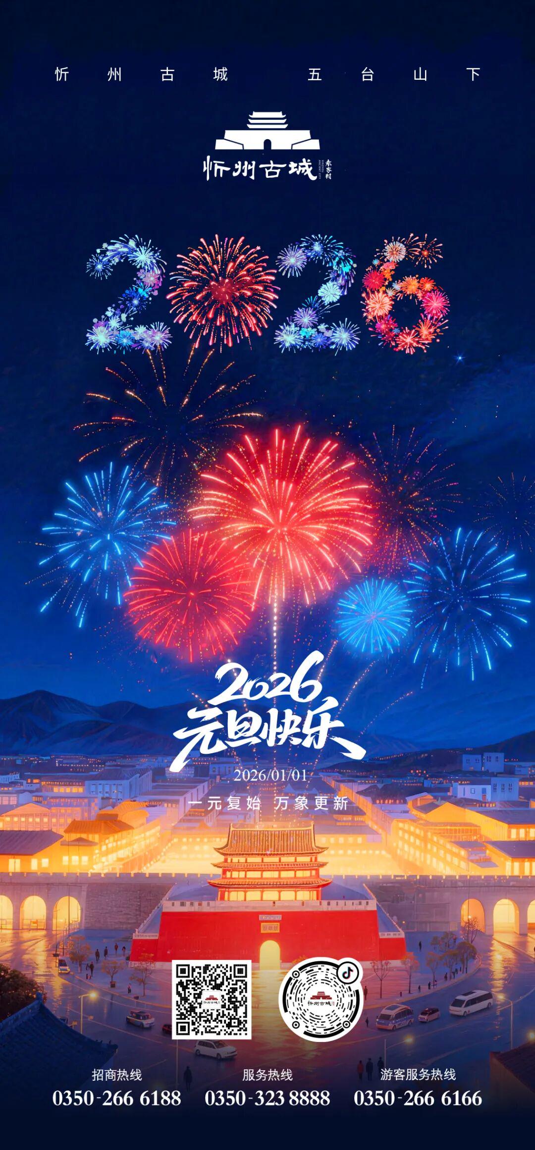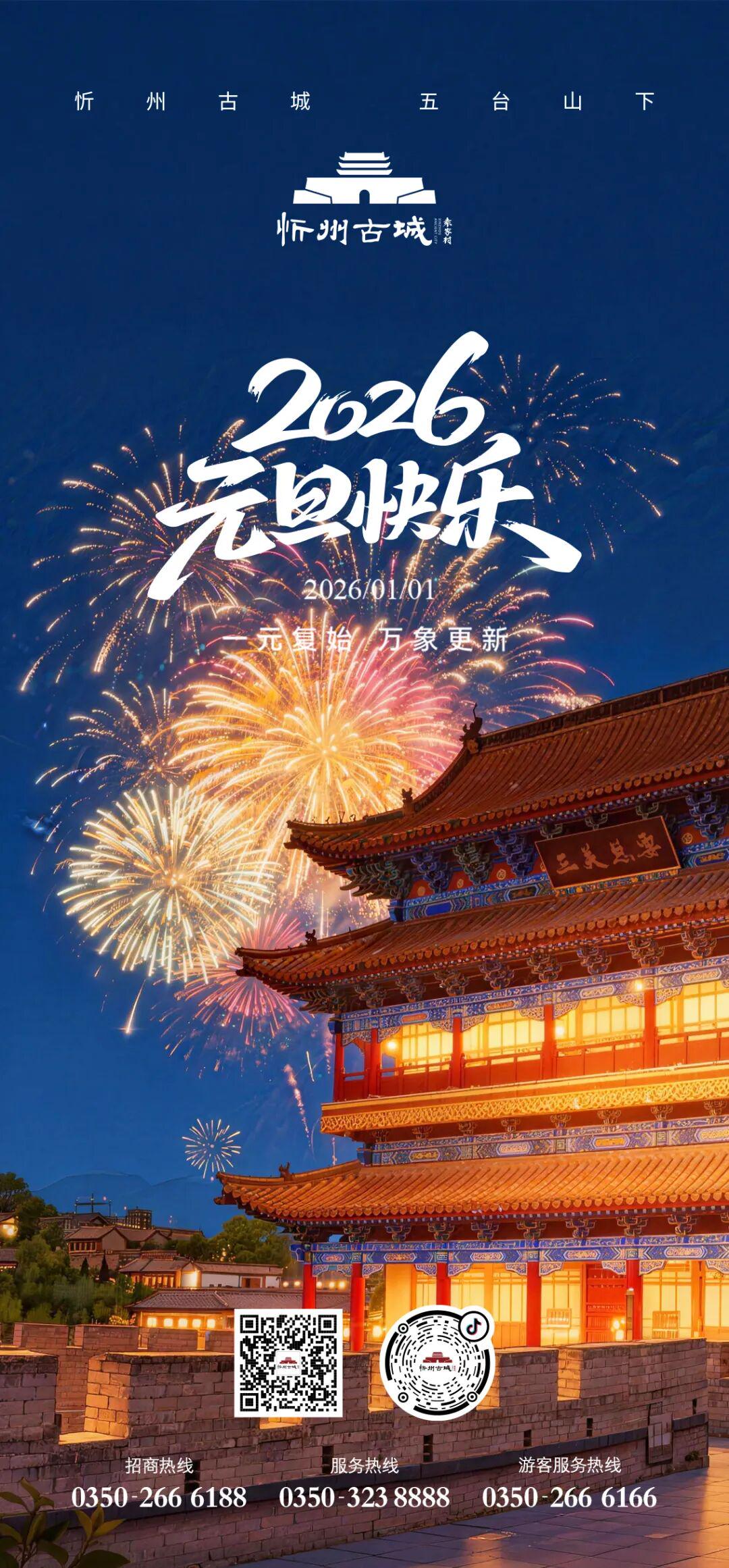 一夜欢聚,一岁新启。烟花散作星尘,钟声余韵悠长,而忻州古城的故事永远向阳生长。新年快乐!最好的人,此刻就在身旁!