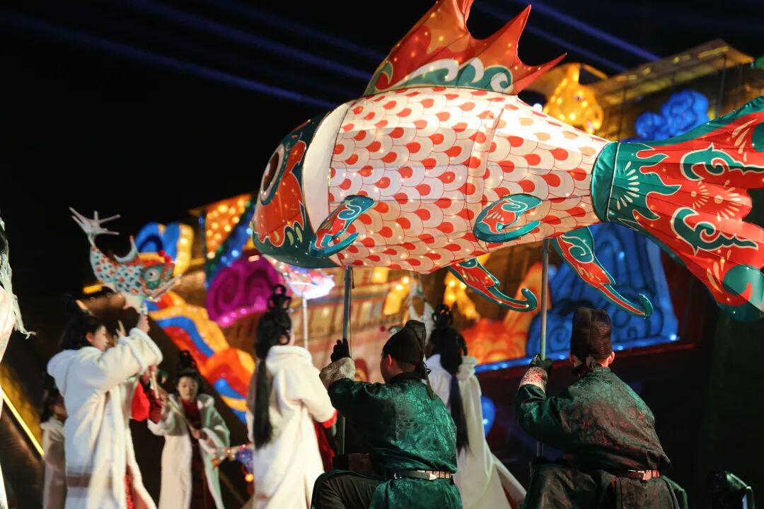 非遗不眠,百戏夜宴。喷火、傩戏、火壶、火魔方、木偶戏……民乐与鱼灯共舞,在盛世国乐的旋律中,非遗与现代视觉交织,擦出令人心动的火花。