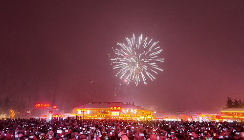 20:32,烟花秀与激光秀准时登场!璀璨烟花划破夜空,绚丽激光点亮雪乡林海,欢呼声、惊叹声此起彼伏,将跨年氛围推向顶峰。