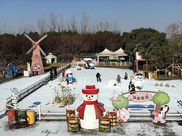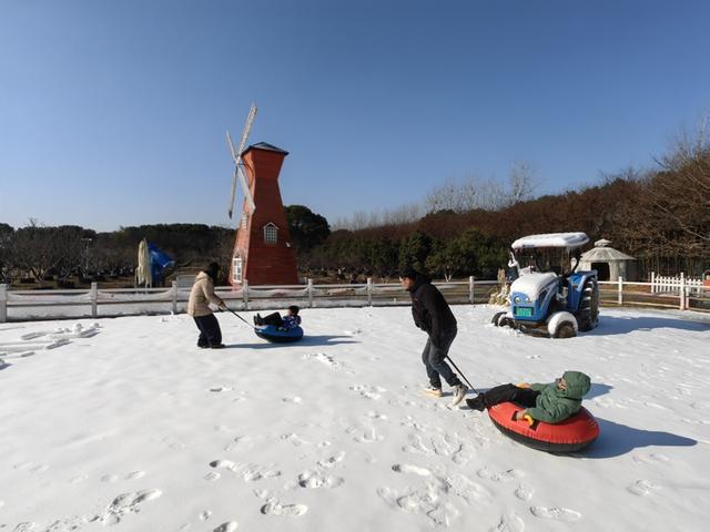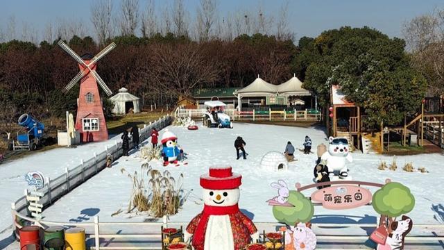 2026年元旦假期,在远郊金山区的山阳田园,丰富多彩的活动和冰雪世界,吸引亲子家庭来此游玩,感受郊野悠闲、惬意的假日时光。