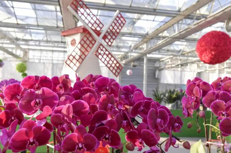 草莓博览园东区C馆已变身"兰花海洋",内设"纳福""仙境""金兰会""兰庭"四大主题展厅及兰布拉风情街,将蝴蝶兰、国兰等特色品种与节庆氛围、艺术设计相融,沉浸式赏兰空间成为拍照出片胜地。园艺区则是亲子家庭的最爱,兰花科普、花艺展示、知识分享等寓教于游的环节,让游园之旅兼具观赏性与趣味性,现场欢声笑语不断。