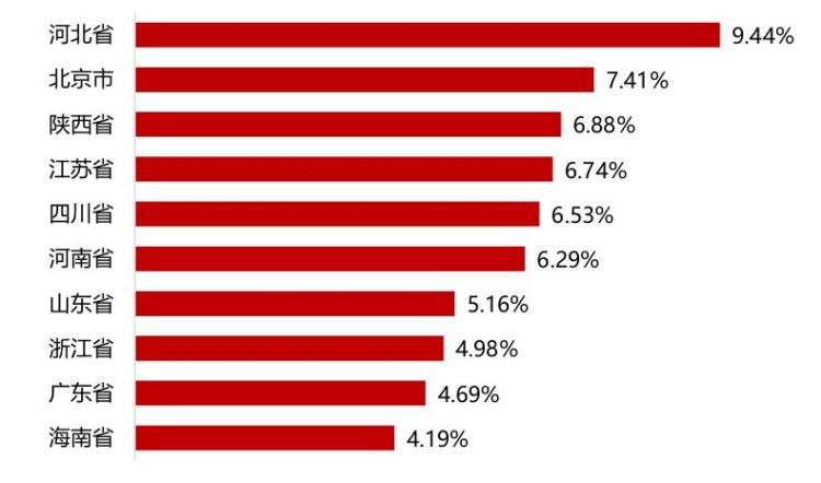 图2:太原市2026年元旦假期省外游客分布情况(前10位)