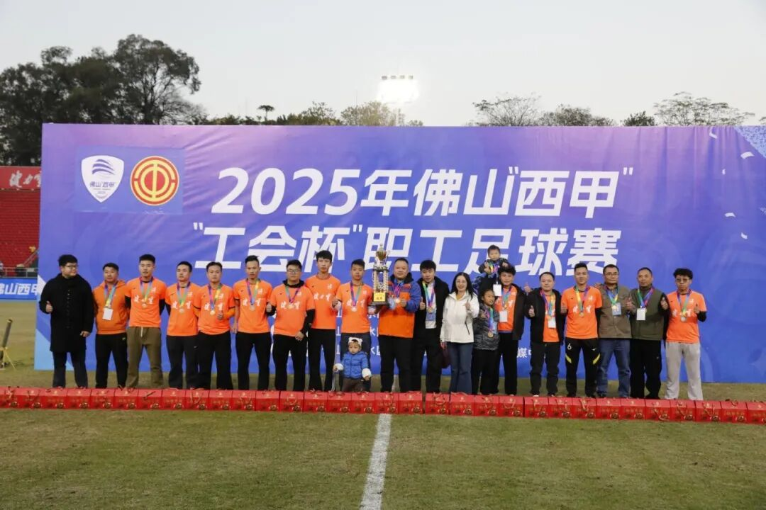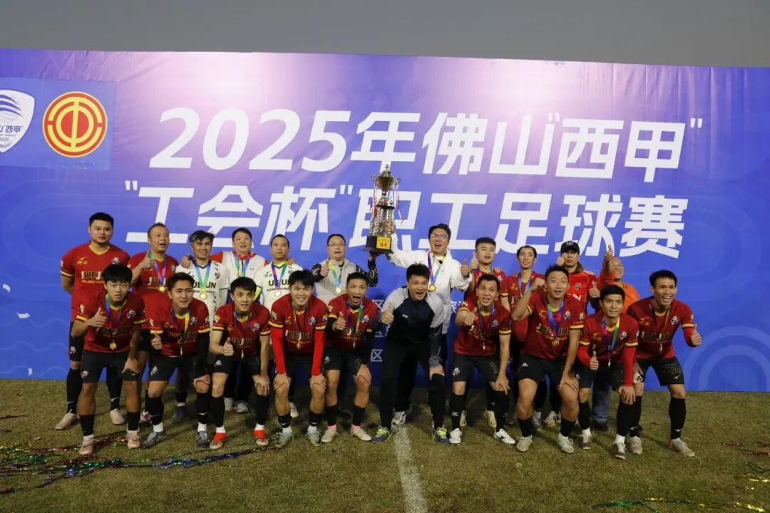 同期举办的2025年佛山“西甲”“工会杯”职工足球赛,西南珏骏建材队捧得冠军奖杯,西南健力宝取得殿军奖杯,展现职工团结拼搏的风采。