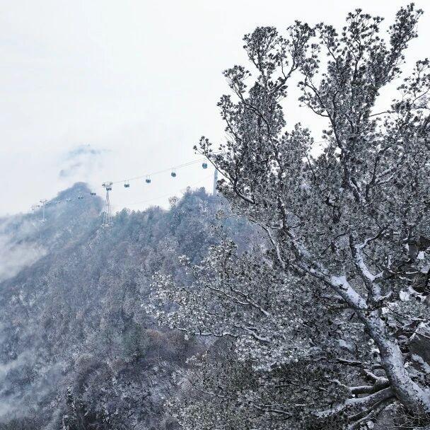 亚洲唯一三针松, 树干斑驳如龙鳞,扎根悬崖峭壁,冬日与雪景相映,氛围感拉满!